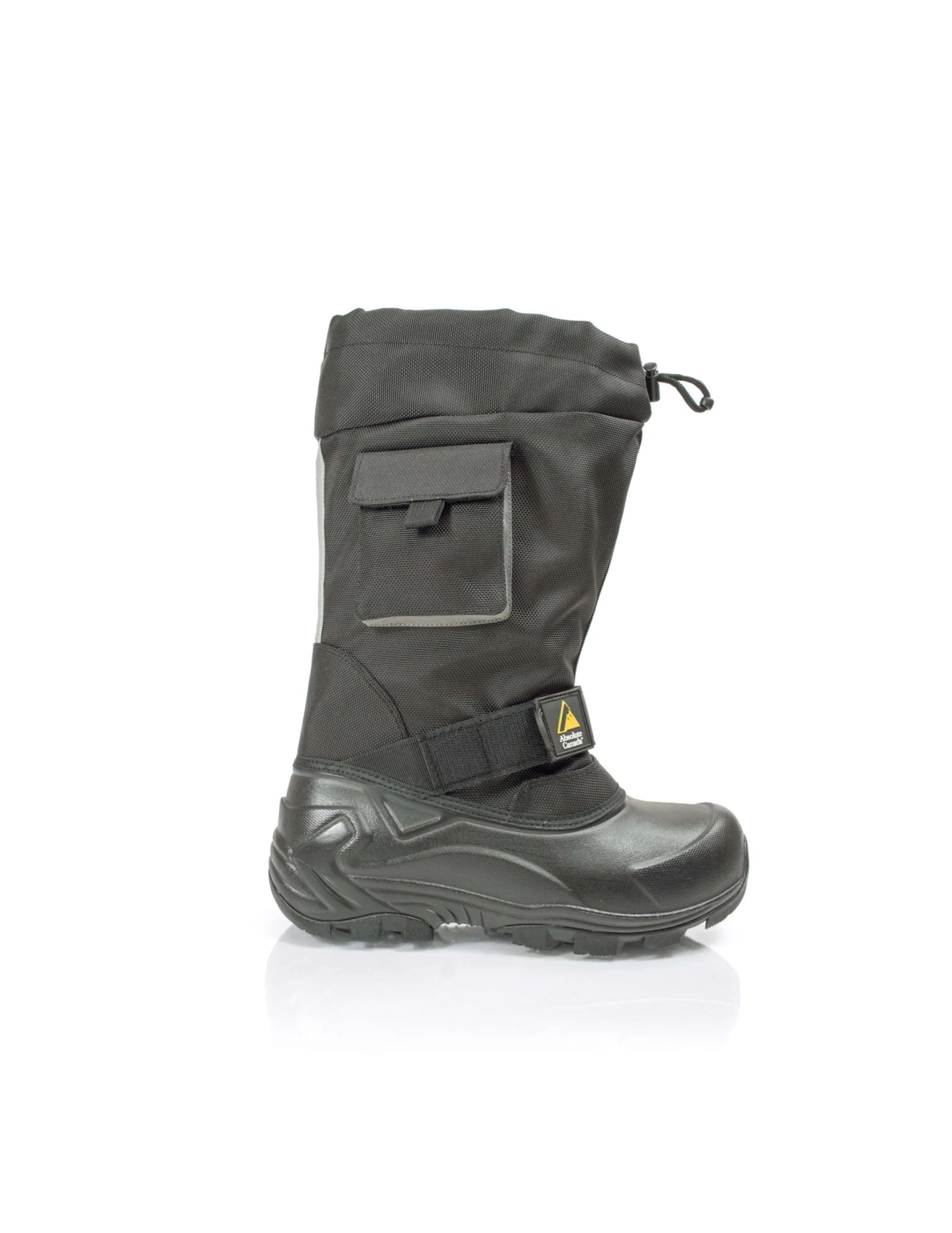 1680 D Nylon with side pocket. Removable multi-layer felt liner. Thermoshield™ insulating fibers. Ultralight EVA shell with TPR outsole. COMFORT RATING: -60°C/-76°F.