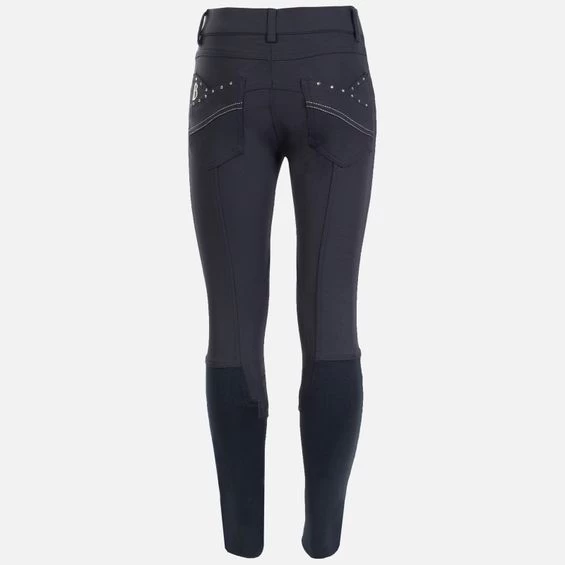 Choose these trendy high quality knee patch breeches that lend plenty of style to your riding wardrobe. The medium waist fits beautifully, and the tiny Swarovski crystal detail adds a lovely accent to these Opti-pro breeches.