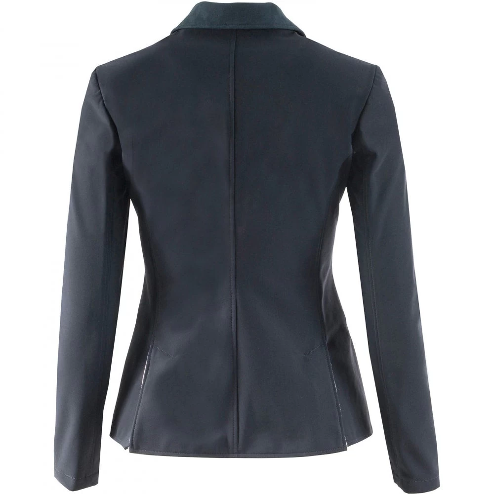 Elegant details and a lightweight fabric give this stunning show jacket its impeccable look and feel. The careful attention to detail and quality workmanship make this jacket special. The soft technical fabric is extremely lightweight and breathable and will look amazing all day long on the showgrounds. A metallic silver-coloured zipper is hidden behind the front buttons for a smooth look and snug fit. The three front buttons hide this zipper while the fit is flattering and comfortable. The front slant pockets and rear vents provide a slimming appearance. The collar is designed for comfort and a crisp look. Turn heads when you turn in your next round wearing this beautiful show jacket.