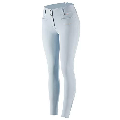 These breeches offer a new look and feel. Elegance combined with high fashion and functionality is showcased in this lovely pair of breeches. These breeches are classically styled with some technical updates. They feature a silicone grip full seat. You will find optimal comfort during training or competitions with a high waist. The Opti-Pro fabric is highly breathable and provides the perfect amount of stretch while maintaining shape. With smooth lines and simple details, the Tiffany is the ultimate option for riders who prefer a mix of the traditional and modern. Features include breathable, moisture-wicking fabric with long-lasting and functional 4-way stretch, as well as an excellent calf fit with a stretch panel and a high waist design for comfort. Machine wash inside out in 30 degree water. Line dry. Do not iron. Do not use fabric softener. BV Opti-pro fabric: 92% Polyamide, 8% Polyurethane.