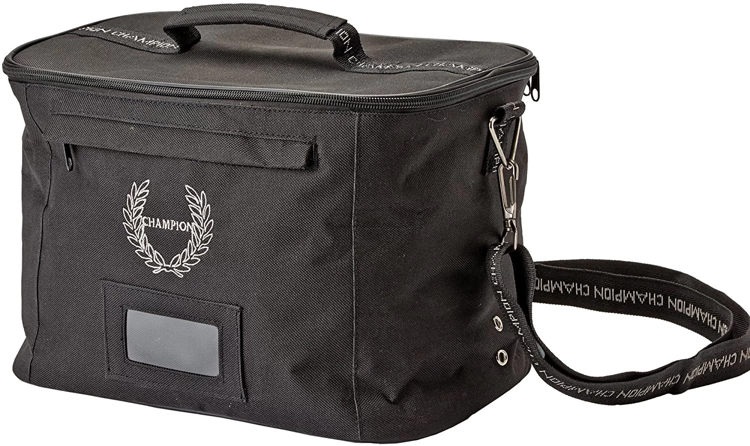 Protect your Champion riding hat with the Riding Hat Bag featuring an adjustable strap with Champion branding. Ventilation holes provide breathability for your hat whilst contrast diamond quilted lining offers cushioning. Internal and external pockets are perfect for storing accessories such as hairnets and stock pins. Complete with plastic cosmetic mirror and identity slot, this hat bag is perfect to take to any show.