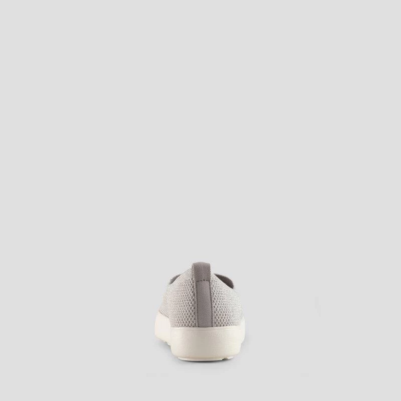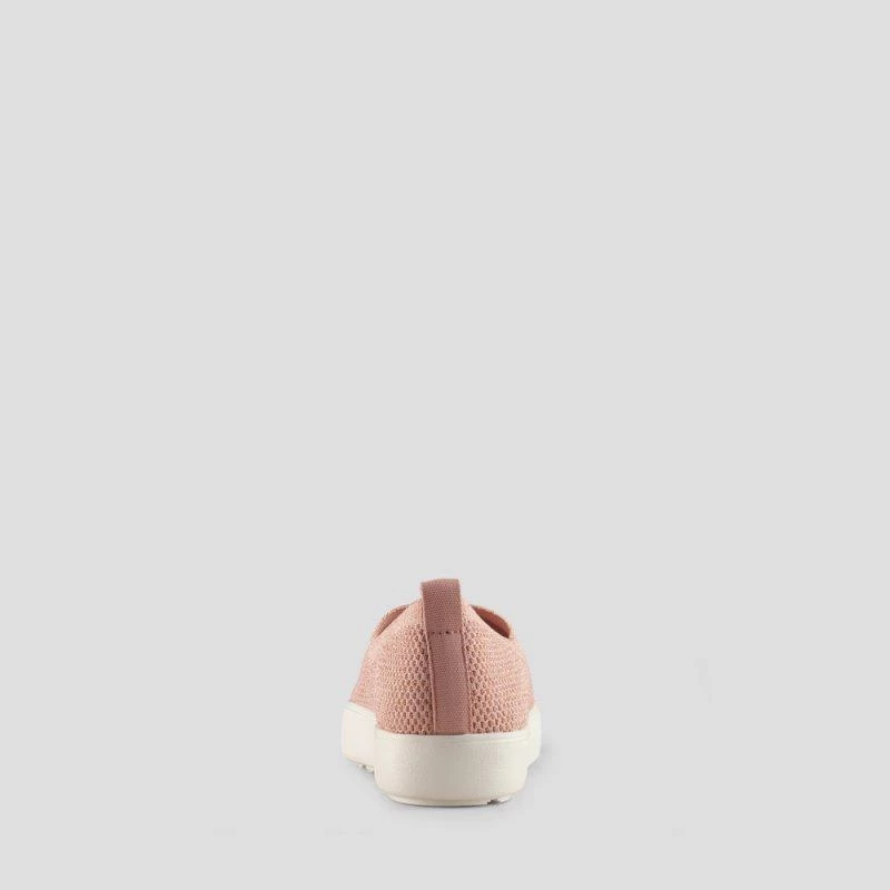 Feather light metallic stretch knit slip-on. Feminine taper toe shape, removable molded foam leather insole. Lightweight EVA outsole with rubber tread.