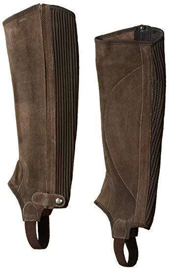 Dublin Childs Suede II Half Chaps Classic Suede Half Chaps Give You Extra Grip and Protection While Schooling! Features: High-Quality Suede Half Chaps Updated inside Panel With Curved design Elastic Stretch Calf for Extra Comfort Full Length YKK Side Zipper With Snap Closure Flattering Spanish top for An Elongated Leg Item Specifications: Color: Black, Brown