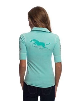 Seamless design with slight ruching at waist for a super comfortable and flattering fit. Mock neck zip front with reflective ticking stripe in zipper tape. Very flattering seamless lined design gives a beautiful fitted silhouette. No seams mean no chafing. Gripper dots on inside hem keeps shirt in place. Fabric is lightweight, perfect for spring, yet blocks the sun. Technology meets functionality and fashion!