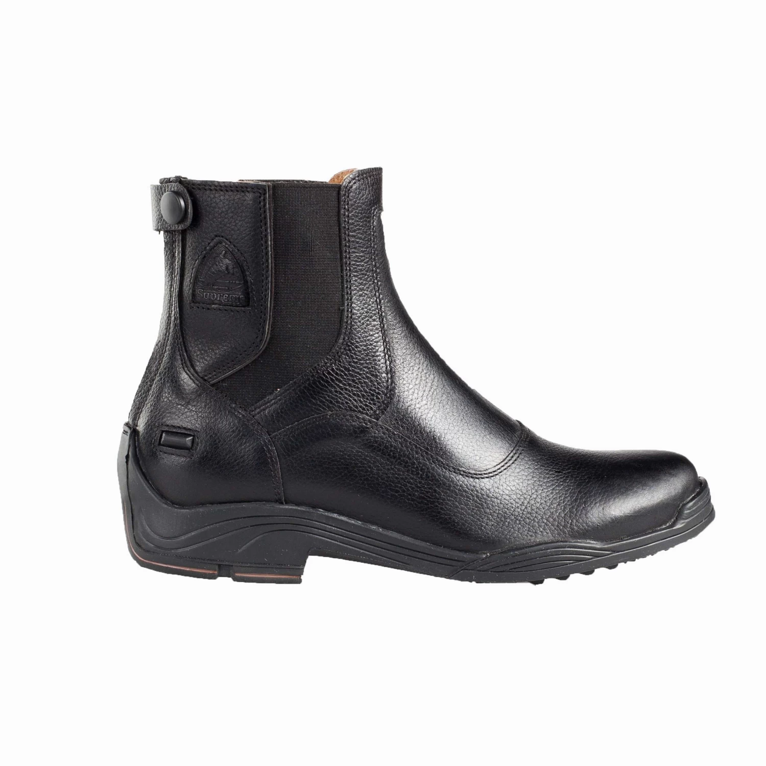 These European-made super soft paddock boots are made of cow nap outer with leather lining. The high-quality YKK-zipper at the back and rubber spur rest are a nice feature. Ribbed elastic at both sides of the shaft provides excellent fit and flexible support. The upper side of the foot has extra soft leather to allow your foot to flex into proper position in the stirrup. The rubber soles are anti-slip and provide a great grip in the stirrup. A lining including the Thermy-Tex formula provides an anti-bacterial/anti-odor function. These leather boots will provide comfort and style from the first moment you try them on.
