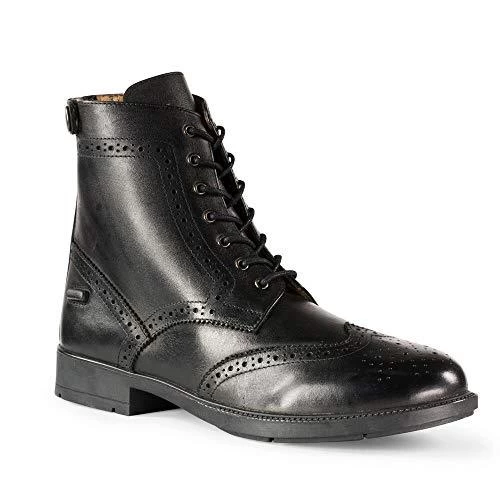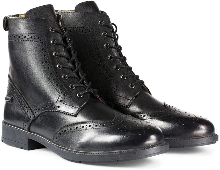 Horze Devon Jodhpurs New fashionable paddock boots are crafted in exclusive premium quality leather. The style has a classic, traditional look w/punched hole pattern, laces at front and convenient back zip. The comfortable sole w/soft insole is made of durable rubber.