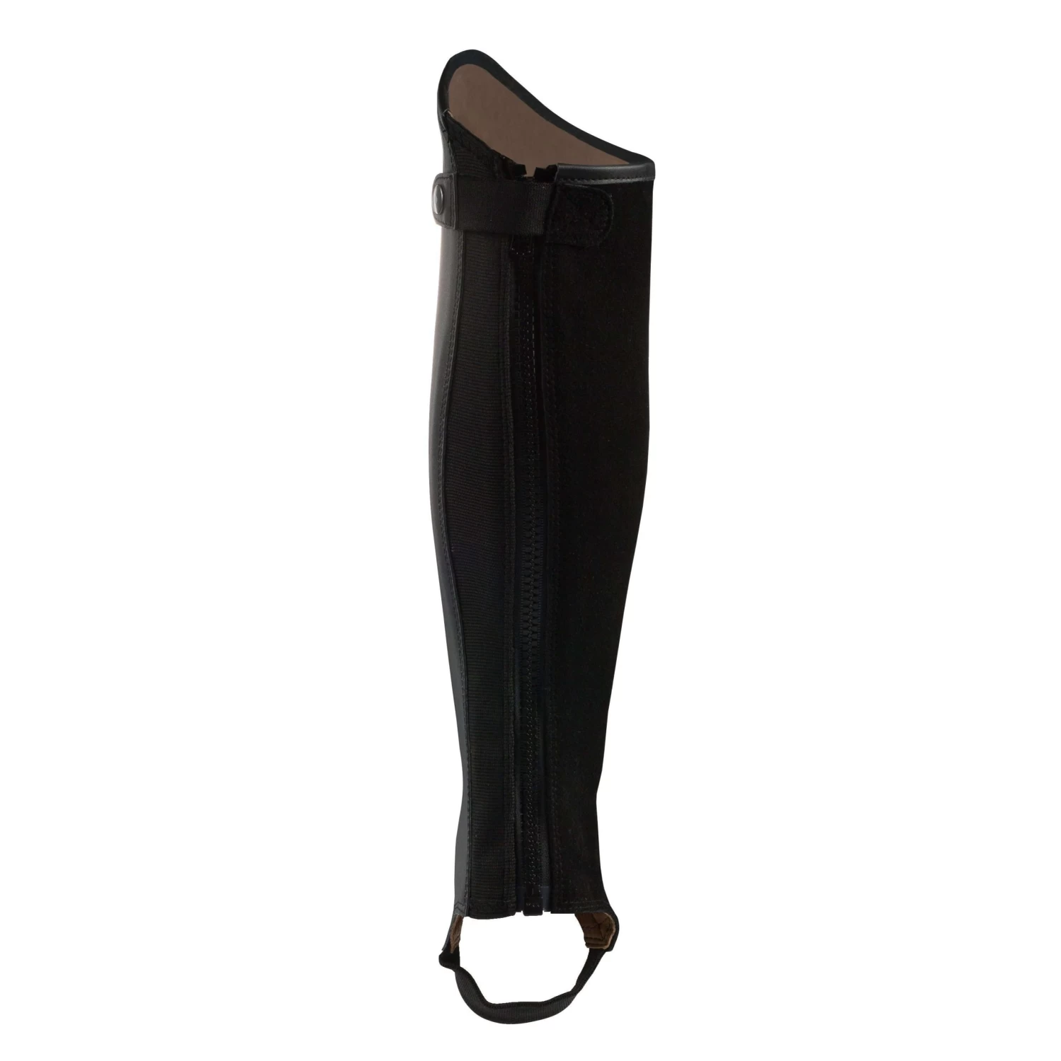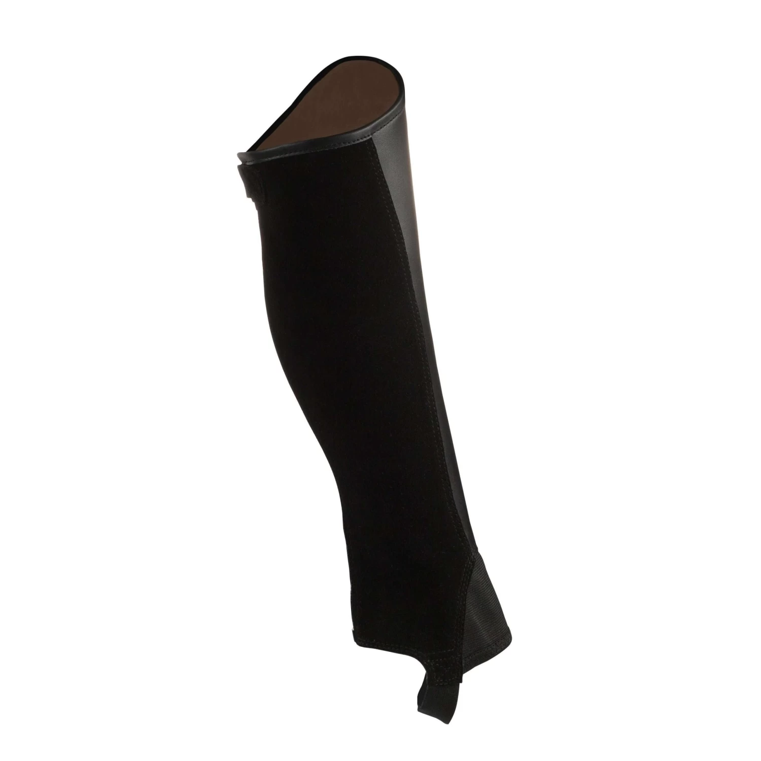 Ride with comfort and support without the work of tall boots. High quality leather half chaps have a soft leather lining and suede inner leg to provide a good grip. Durable YKK zipper at back makes it simple to zip these half chaps up over breeches. These lovely leather half chaps will pair beautifully with the extensive line of paddock and jodhpur boots.