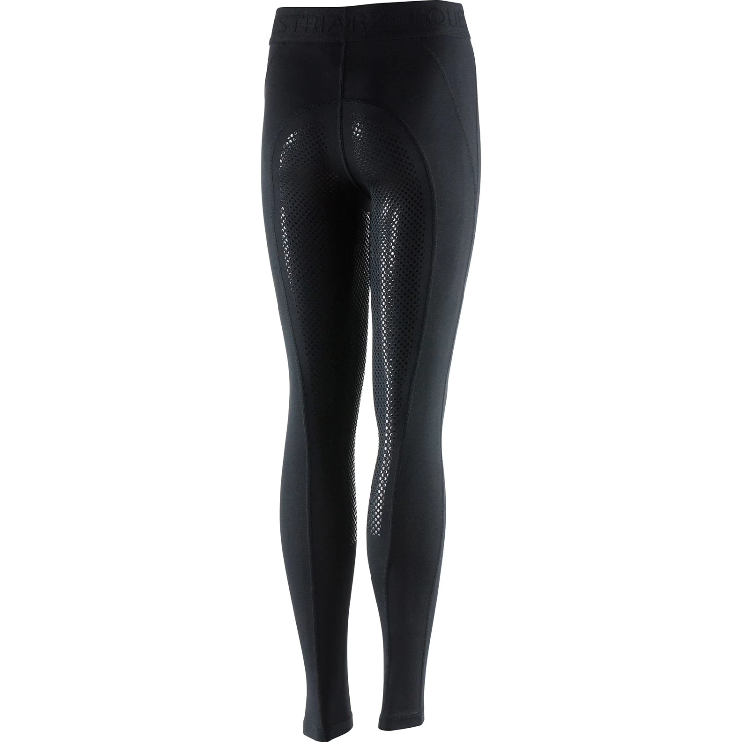 For riding every day, your child will be cool and comfortable. These breathable, quick drying tights have a silicone full seat, which offers good grip even while you are sweating. The wide waistband with “Cool” branding help keep these tights in place and a small inside pocket is the perfect place to stash cash or keys. Machine wash in cool water inside out with similar colors. Do not use fabric softener. Line dry. 92% Polyamide, 8% Elastane, knittedPolyester mesh panels.