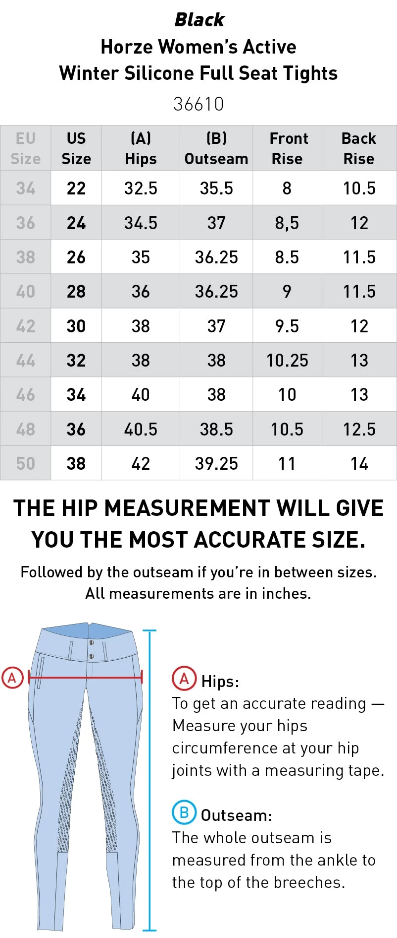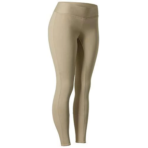 The soft, breathable fabric with brushed fleece lining is ideal for holding warmth in to keep you feeling cozy even on cold weather rides. The mid-rise waist is perfect for layering and the simple front closure won’t feel binding in the barn or in the saddle. For added security, the silicone full seat adds a little extra grip to keep you secure in the saddle on those days when your horse is feeling a little frisky.