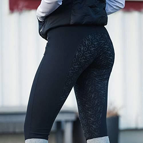 The Horze Women’s Angelina Full Seat Breeches with Silicone Grip are lightweight full seat breeches that are the perfect choice for hot summer days. These riding pants are designed with seams at the front for a slimming effect. A silicone print full seat provides extra grip and security in the saddle. The high waist helps you maintain your correct position with ease. Additional details include convenient front zipper pockets, along with a front zipper and snaps. The Angelina Full Seat Breeches by Horze are made from breathable and quick dry fabric to keep you cool and dry. The mesh fabric at the leg is also breathable to help you stay comfortable under your boots. Materials: 90% Polyamide, 10% Elastane.