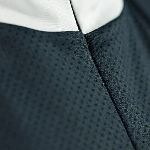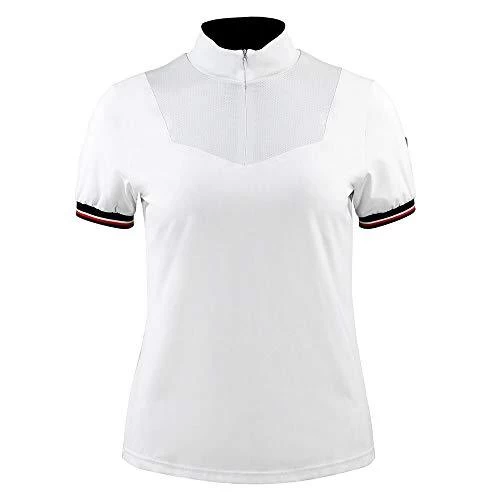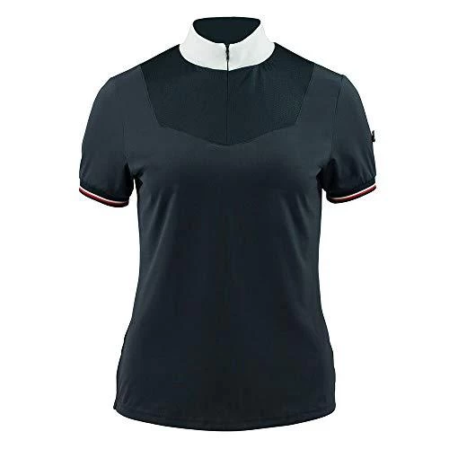 The convertible collar of this beautiful show shirt is ideal for wearing in competition and can also be worn unbuttoned for casual training. The mesh fabric at chest and back allows additional airflow. The zipper is easy to use and allows for a quick change. Three rows of stripes trim the short sleeves. 72% Polyamide, 28% Elastane, knitted. Mesh parts: Polyamide/Elastan. Machine wash cool water. Air dry.