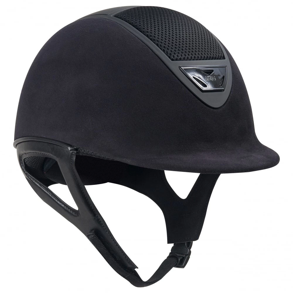 This stylish helmet features a traditional suede finish with a subtle matte finish along the vent for just a dash of style. This look is sure to be a hit with hunter riders or anyone who prefers a classic look. Multiple vents in the front and back offer a cool and comfortable fit during the heat of competition or training. A comfortable chinstrap offers a quick-release and easily adjustable hook and loop closure. The comfort leather-look harness is slightly cut away at the back of the neck. For a custom-like fit, removable, washable liners are offered in two thicknesses.