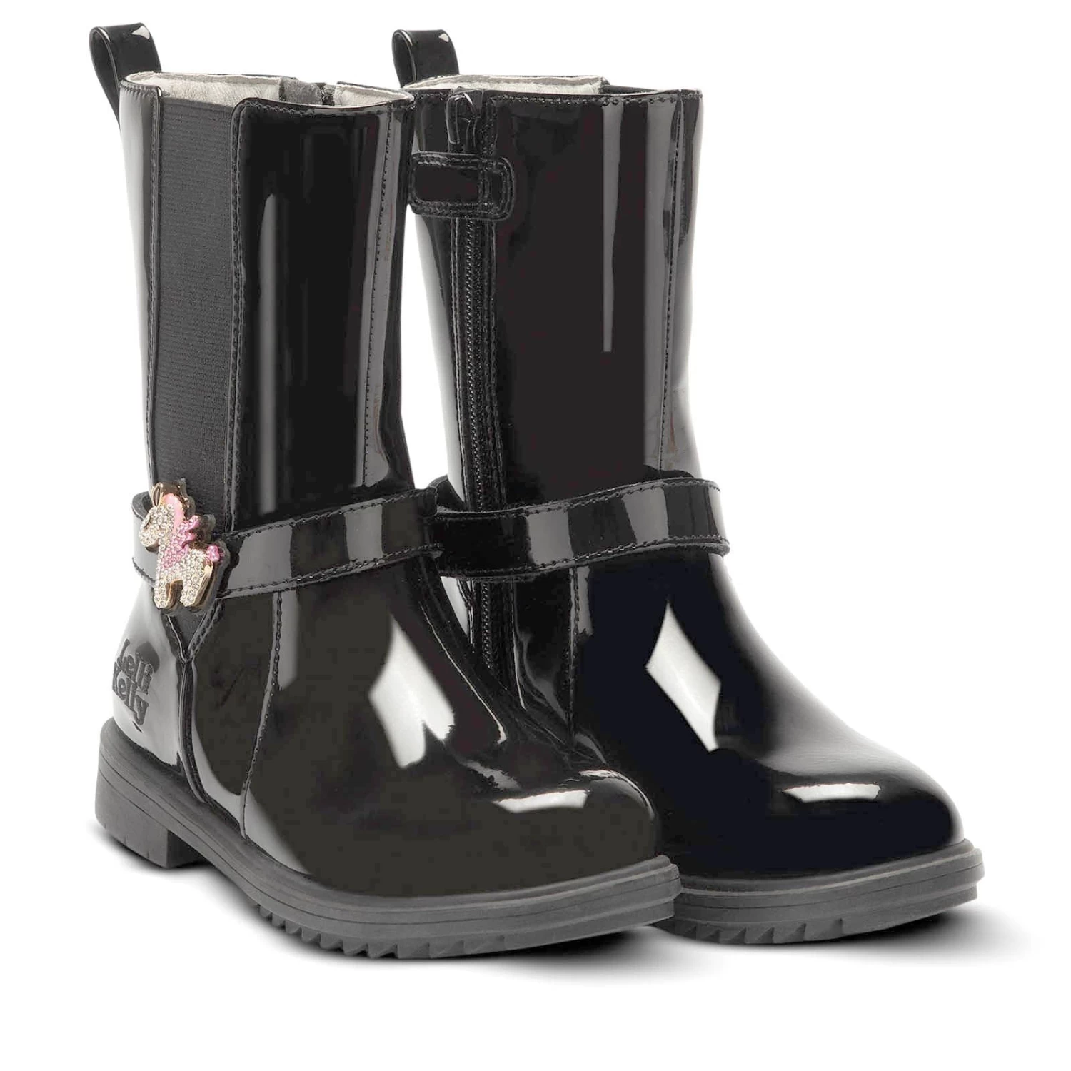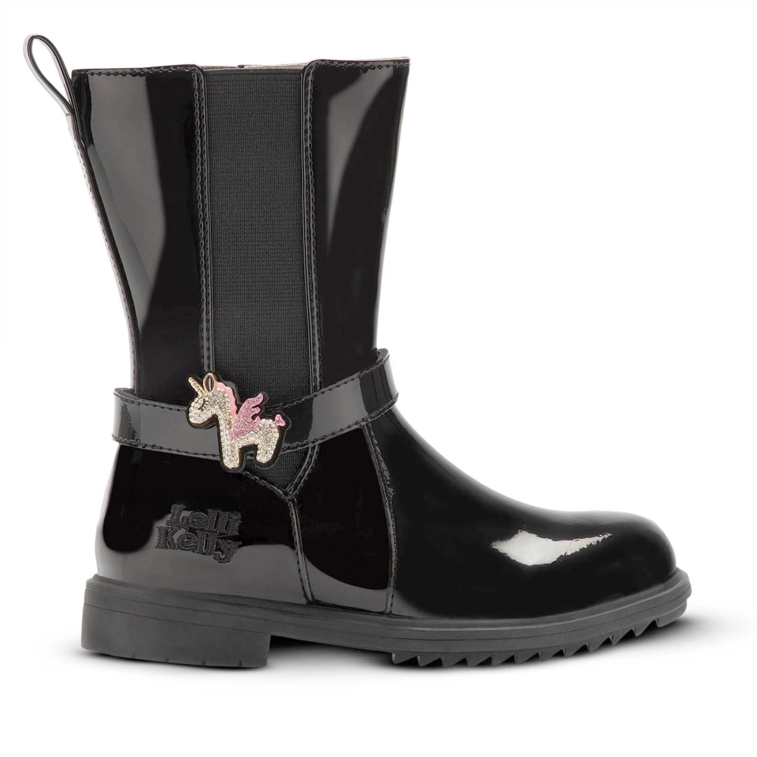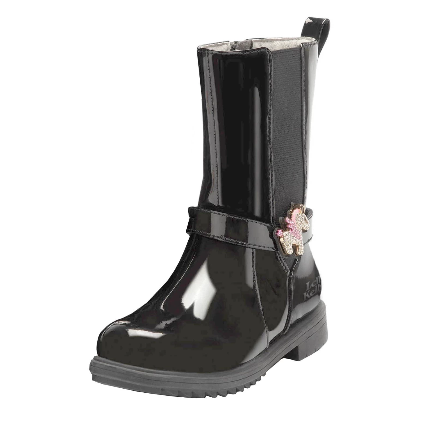 - Subtle Style: Lelli Kelly took the sleek elegance of high-rise boots and added just the right amount of unique and bold flair. The shiny synthetic upper material is complemented by an ankle strap that is adorned with a sparkly pegasus pendant that can be removed for a more formal look.
