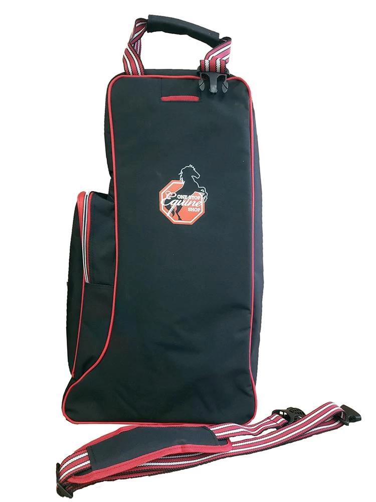 Every traveling English or Western rider needs a good, reliable tall boot bag, so we made one! Our tall boot bag is designed to keep your show boots and any other personal items safe while in transit. If you’re looking to fill out your travel collection, check out our exclusive One Stop