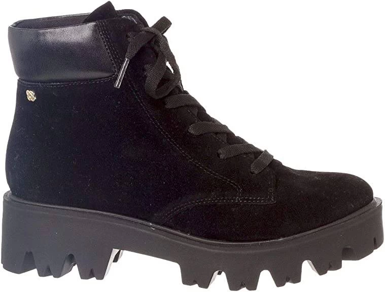 Petite Jolie boot made of synthetic material, with suede texture, inner part lined with fabric and lace closure. The heel is tractored and very light. It is easy to walk and does not weigh on your feet. You can use it on a daily basis or on night rides.”