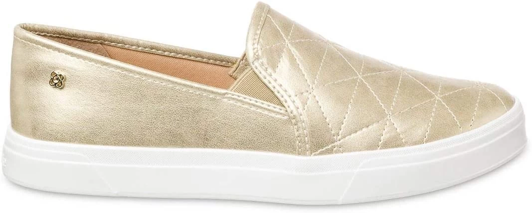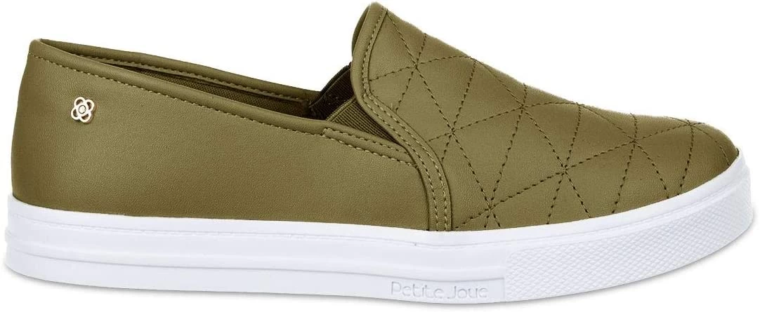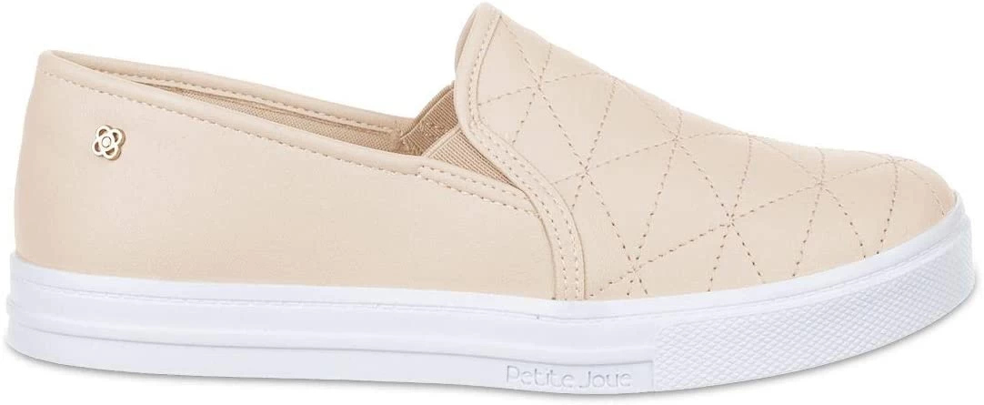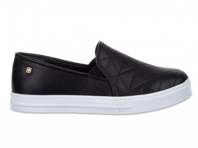 Petite Jolie Slip On made with synthetic material, metallic texture and detail in stitching on the front, it also has elastic details on the sides to facilitate the wearing.