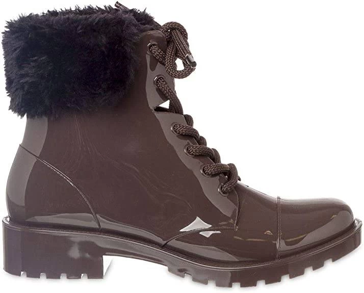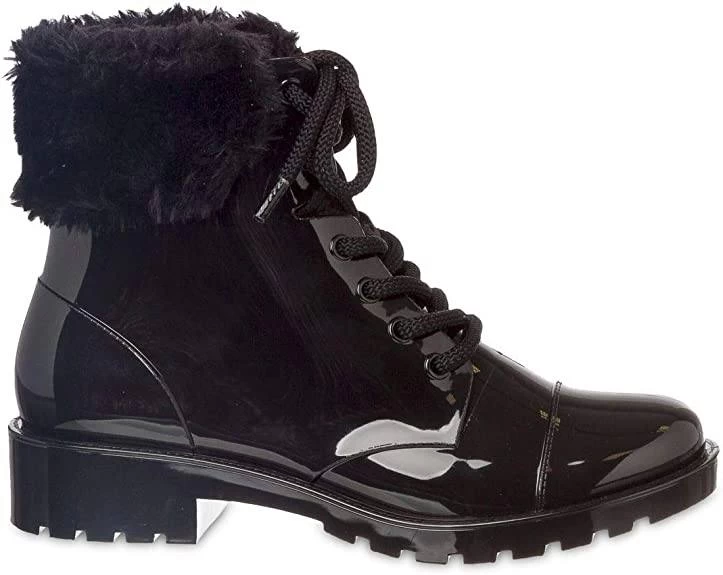 Iggy Petite Jolie boot made entirely in J-Lastic, has a shoe lace and plush fabric detail on the front. Great option for those looking for style and confortable feet on cold days.