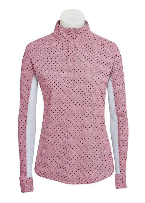 This Princeton model features a quarter zip pullover design. The modern lace print with mesh detailing under the arms and across the back allow for additional ventilation and style. The sleeves feature thumbholes for additional coverage and comfort. The innovative fabric features include: Moisture control, easy care, wrinkle free wear, no pilling, UV protection equivalent to SPF 50 sunscreen, and Eco-friendly fabric construction. XXS=00, XS=0-2, S=4-6, M=8-10, L=12-14, XL=16-18, XXL=20-22