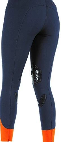 High performing fabrics ensure these sporty breeches keep the equestrian athlete comfortable in the saddle. A self-fabric contour seat, clarino knee patches with silicone gel engineering for extra grip, stretch ankle cuffs and flat lock seams all enhance the rider’s experience.