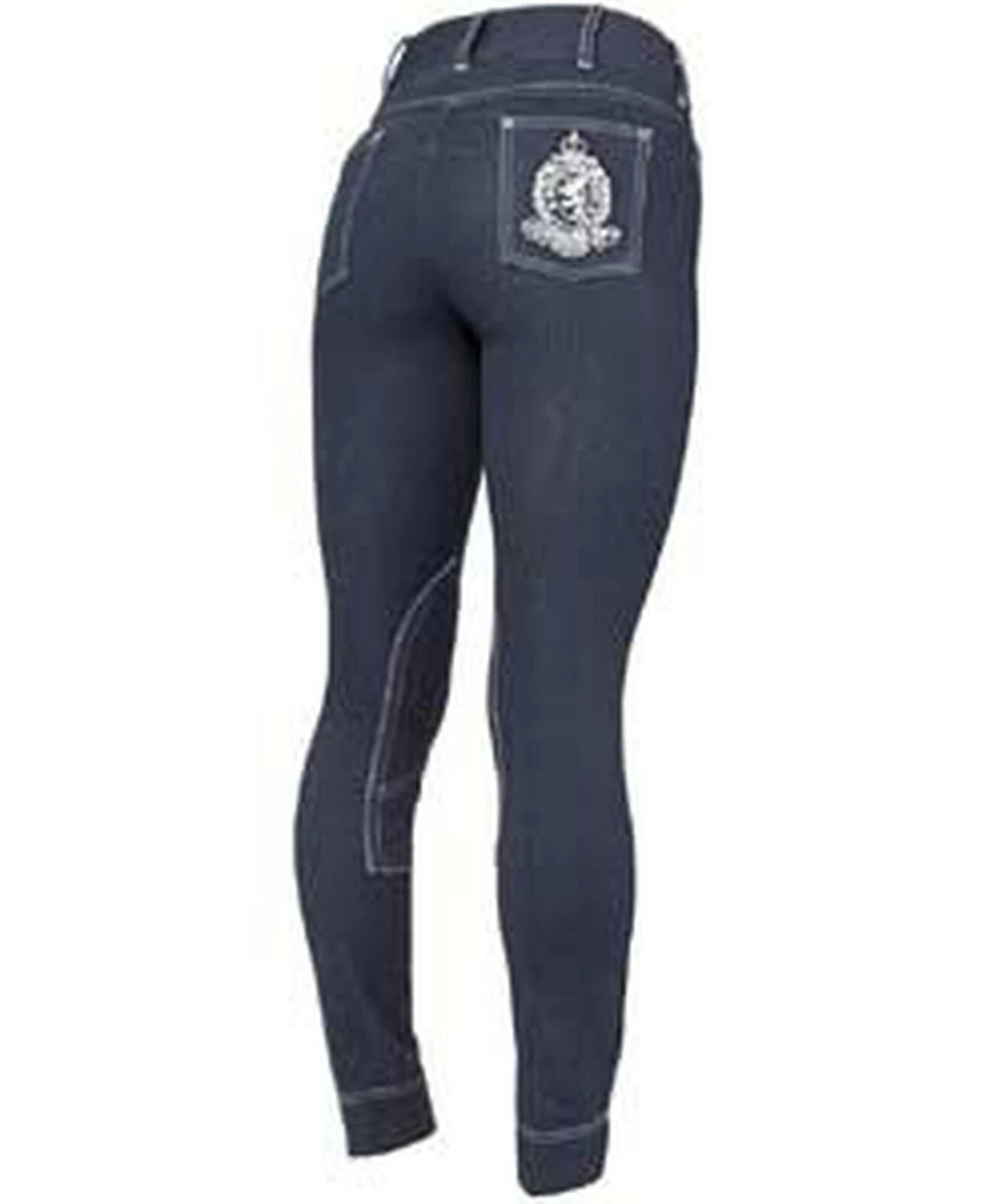 Shires Maids Embroidered Saddle Hugger Jodhpurs feature a Shires emblem on the back pocket. These distinctive jeans style Shires Jodhpurs are made from Creora stretch cotton fabric which gives an excellent flattering fit. Other features of these good value Shires Maids Embroided SaddleHugger Jodhpurs include self fabric knee patches, contrast stitching, pockets front and back in jeans style, rivets, belt loops and rear leg seams.
