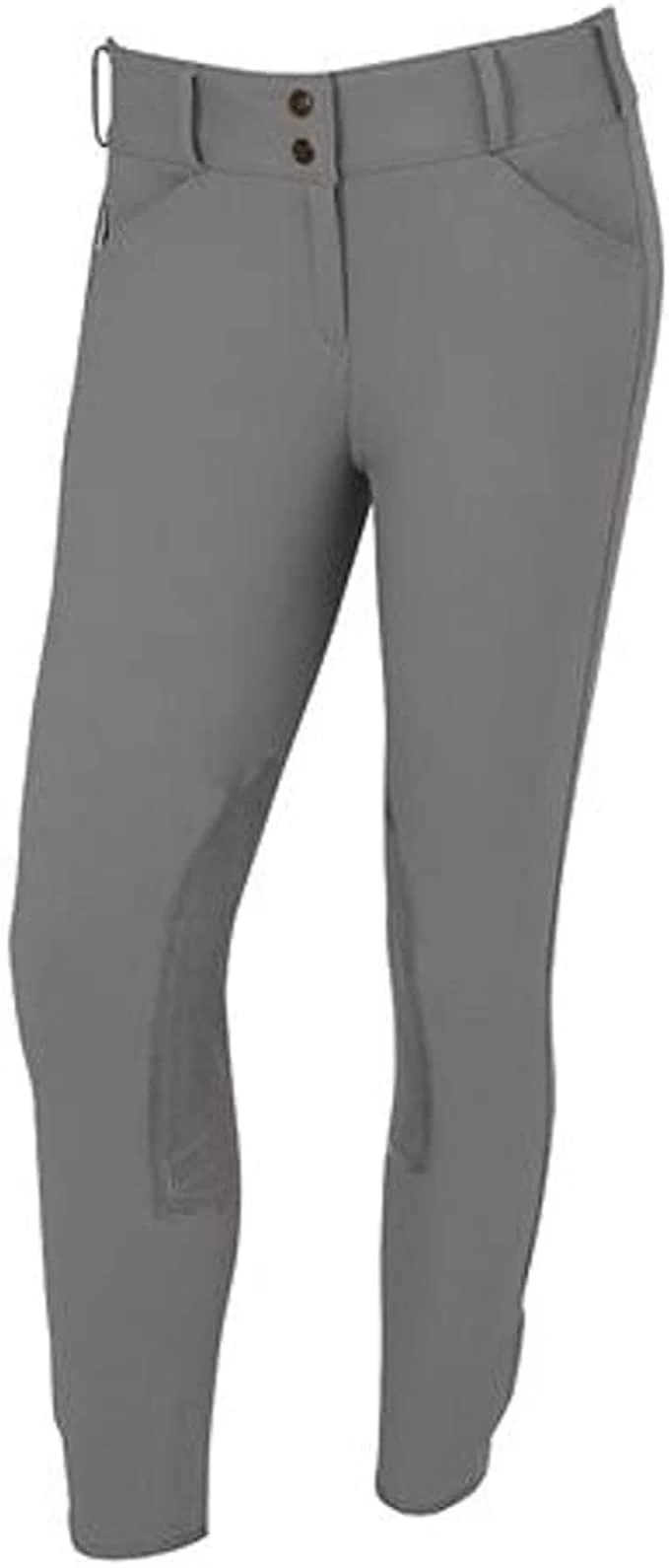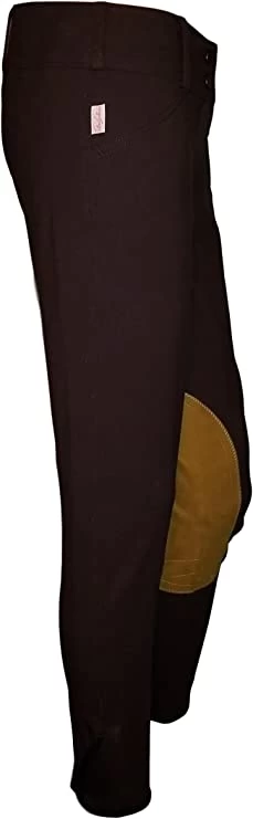 Look and feel your best in the saddle! Made of lightweight woven TS fabric with four-way stretch for unrestricted movement, this fashionable knee patch breech has a Euro seat, 2″ wide waistband, front zip, belt loops and two front pockets. Velcro ankle closures keep breech legs securely in place while Clarino knee patches provide grip.